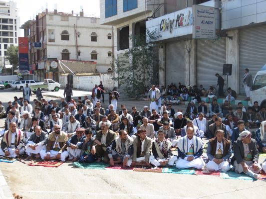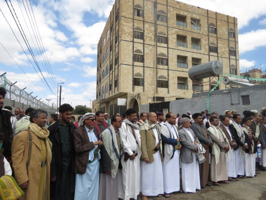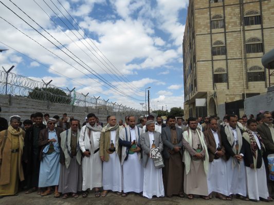 وأشار الأضرعي خلال الوقفة الاحتجاجية لموظفي ونقابيي شركة النفط اليمنية اليوم أمام مكتب الأمم المتحدة بصنعاء في جمعة ” 600 يوم من القرصنة والصمت العالمي المشين “، إلى أن تلك الغرامات تعتبر تكاليف إضافية يتكبدها أبناء الشعب اليمني.