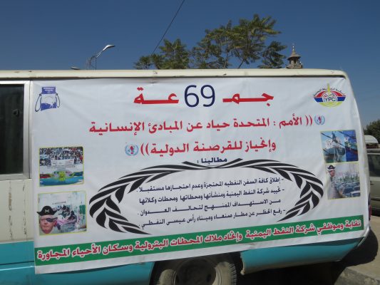 بالصــور : في الجمعة69 شركة النفط اليمنية تنظم وقفة احتجاجية تنديدا باستمرار احتجاز السفن النفطية