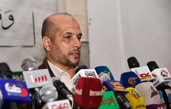 من جانبه جدد عضو المكتب السياسي لأنصار الله عبدالوهاب المحبشي التأكيد على موقف اليمن المبدئي والثبات ووقوفه إلى جانب الشعب الفلسطينى وقضيته العادلة واستعادة أراضيه وإقامة دولته المستقلة وعاصمتها القدس الشريف.