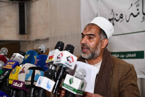 وفي الفعالية أدان مفتي الديار اليمنية رئيس الرابطة العلامة شمس الدين شرف الدين، تطبيع المملكة المغربية مع الكيان الصهيوني .. وقال” ندين ونستنكر التطبيع المستمر من دولة إلى أخرى مع الكيان الصهيوني”.