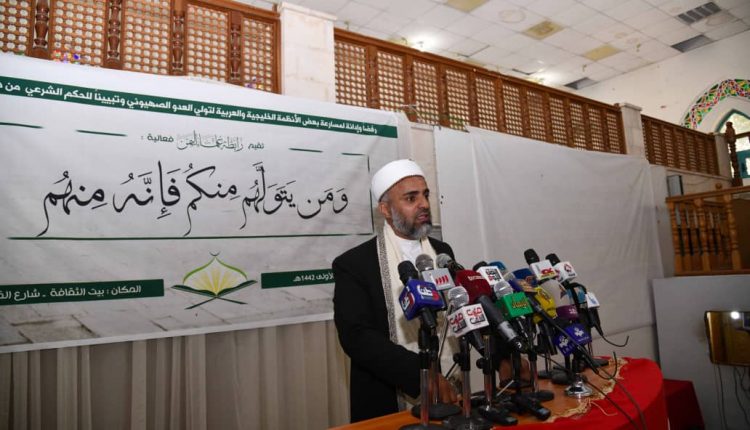 نظمّت رابطة علماء اليمن اليوم بصنعاء فعالية بعنوان” وَمَن يَتَوَلَّهُم مِّنكُمْ فَإِنَّهُ مِنْهُمْ”، رفضاً وإدانة لمسارعة بعض الأنظمة الخليجية والعربية في تولّي العدو الصهيوني وتبياناً للحكم الشرعي في ذلك.