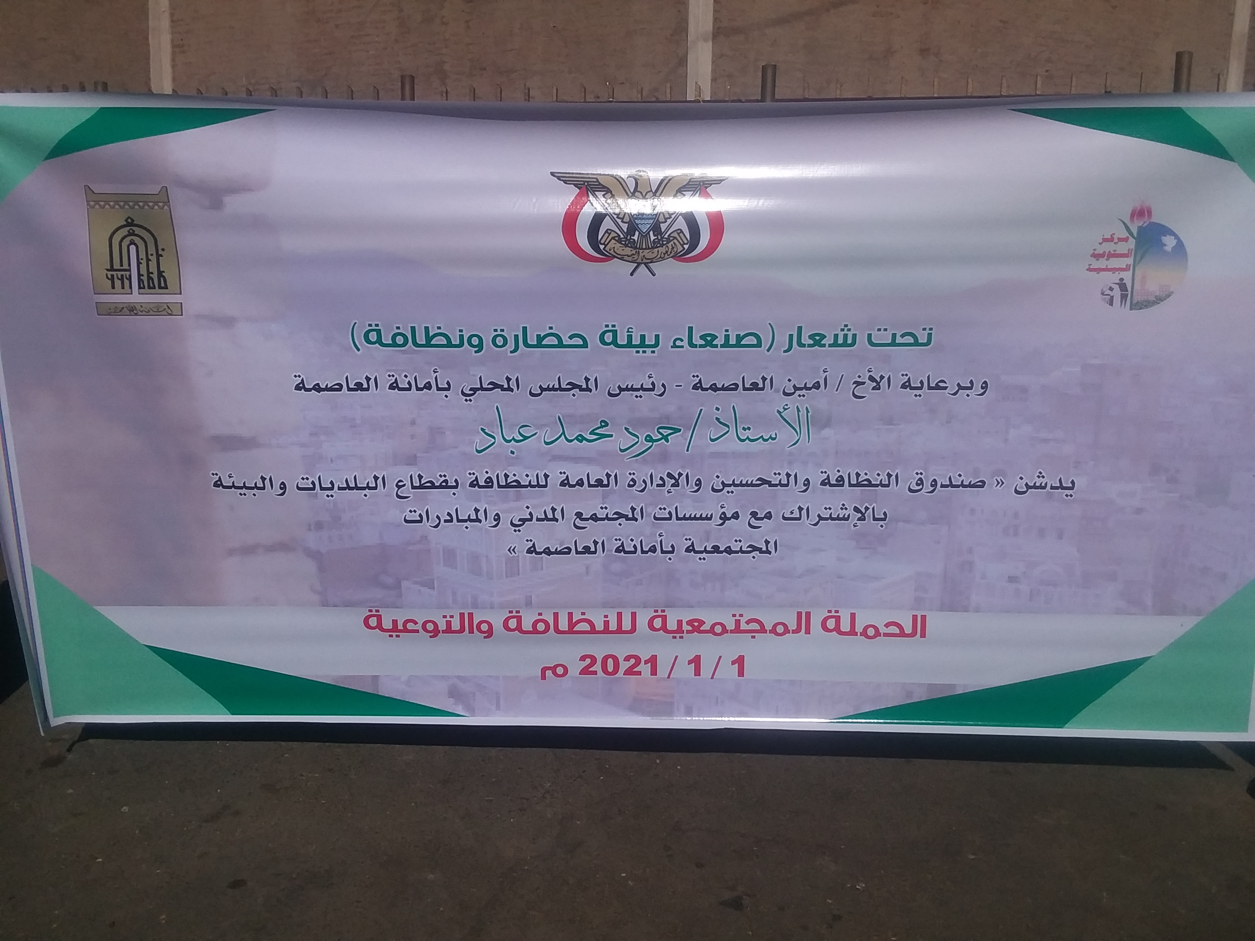 دشن أمين العاصمة حمود عُباد اليوم حملة النظافة والتوعية 1/1 للعام 2021م تحت شعار “صنعاء بيئة حضارية ونظافة”.