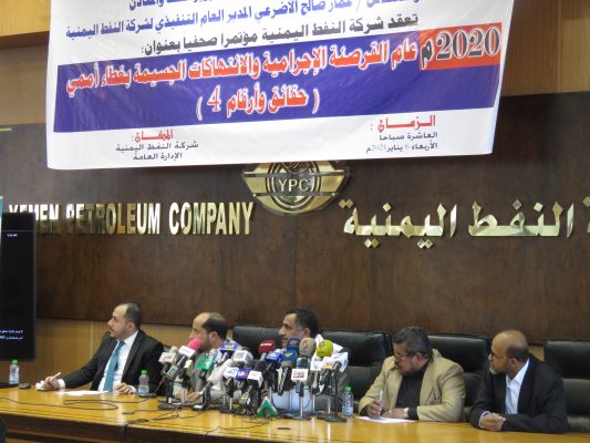 جاء ذلك في مؤتمراً صحفيا عقدته شركة النفط اليمنية  اليوم  بعنوان ” 2020 عام القرصنة الإجرامية والانتهاكات الجسيمة بغطاء أممي”.