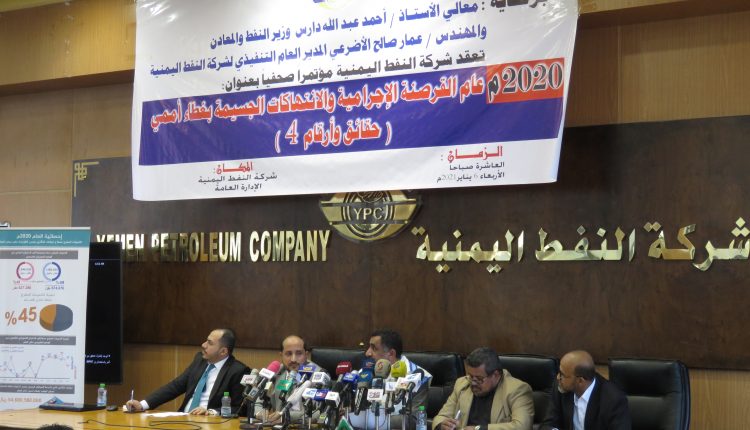 جاء ذلك في مؤتمراً صحفيا عقدته شركة النفط اليمنية  اليوم  بعنوان ” 2020 عام القرصنة الإجرامية والانتهاكات الجسيمة بغطاء أممي”.