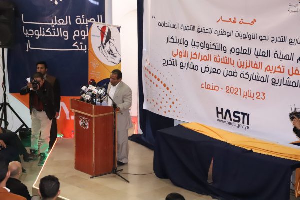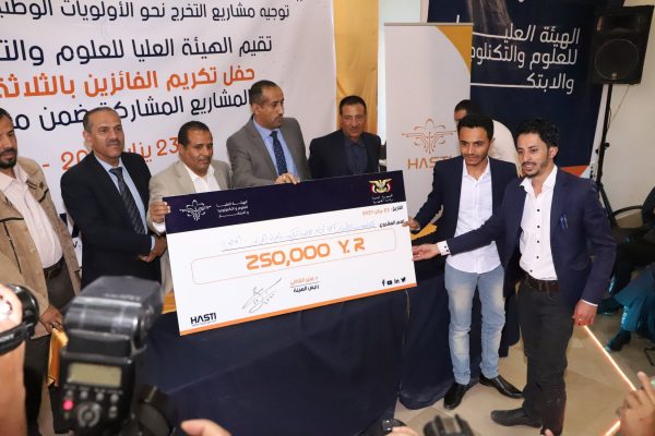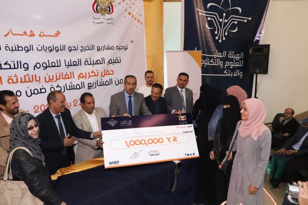 وأعلن رئيس الهيئة عن إطلاق المسابقة الوطنية لمشاريع التخرج في مختلف المجالات والتي ستقام بشكل سنوي وستشمل كافة مشاريع التخرج ذات العلاقة بالعلوم والتكنولوجيا في كافة الكليات والمعاهد على مستوى الجمهورية اليمنية وسوف يتم تقييم المشاريع فيها وفقا لواقعيتها وقابليتها للتطبيق ومدى توافقها مع الأولويات الوطنية ومتطلبات سوق العمل.