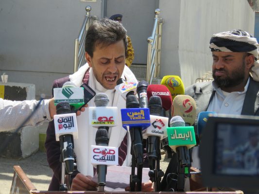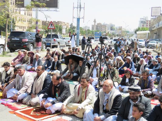 وقال الأضرعي” نحن في اليوم 674 من الوقفات الاحتجاجية أمام مكتب الأمم المتحدة التي لم تحرك ساكناً ” .. مؤكداً أن الأمم المتحدة تتحمل مسئولية معاناة الشعب اليمني إزاء سكوتها على الأعمال التعسفية والقرصنة البحرية.
