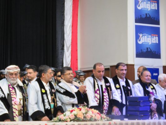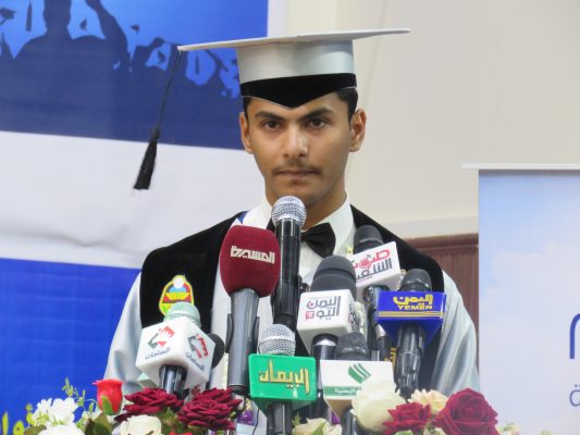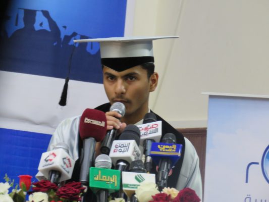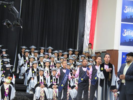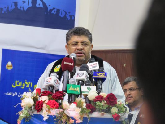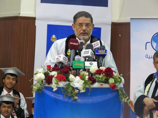 وخاطب تحالف العدوان الأمريكي السعودي بقوله: “نحن اليوم بهذا الحفل ننتصر رغم سعيكم منذ اليوم الأول لعدوانكم لإفشال التعليم بمراحله المختلفة، من خلال قصف المدارس واستهداف المعلمين بقطع مرتباتهم وإرعاب الطلاب في مدارسهم بالغارات الجوية، لكن الشعب اليمني استمر في التعليم ليحقق انتصارا نحن اليوم نحتفي به”.