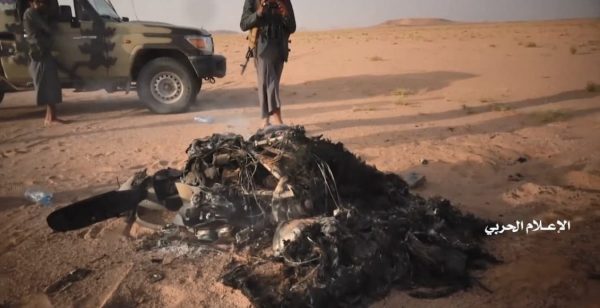 الإعلام الحربي يوزع مشاهد حطام الطائرة التركية ” كاريال” التي أسقطت في الجوف