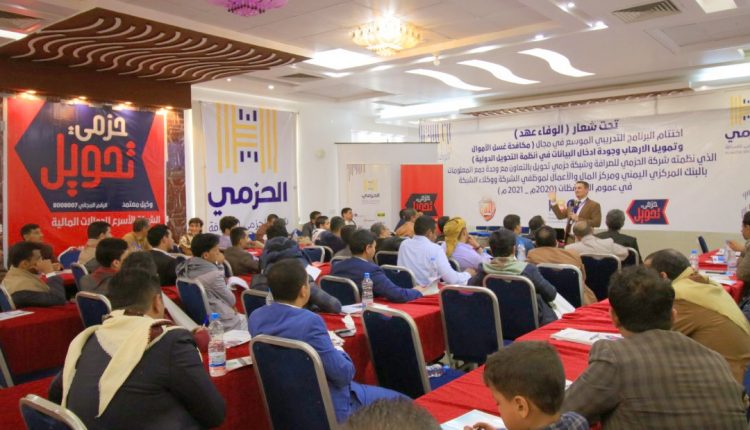 اختتمت شركة الحزمي للصرافة وشبكة حزمي تحويل اليوم بأمانة العاصمة فعاليات البرنامج التدريبي الموسع في مجال مكافحة غسل الأموال وتمويل الإرهاب وجودة إدخال البيانات في انظمة التحويلات الدولية لوكلاء شبكة حزمي تحويل من منشآت الصرافة والذي نفذتة الشركة بالتعاون مع وحدة جمع المعلومات المالية بالبنك المركزي اليمني للعام 2020/2021م وفي ختام البرنامج القى الدكتور خالد الحزمي رئيس مجلس إدارة شركة الحزمي للصرافة كلمة أكد من خلالها إستكمال المرحلة الأولى من البرنامج التدريبي باختتام دورة وكلاء شبكة حزمي تحويل في محافظتي صنعاء والمحويت لافتا الى أن تنفيذ البرنامج في مرحلتة الأولى استمر أربعة أشهر واستفاد منه أكثر من 2000 متدرب من كوادر منشأت الصرافة وكلاء حزمي تحويل في معظم محافظات الجمهورية وذالك في إطار خطة الشركة في تأهيل الوكلاء وورفع مستوى قدراتهم وتعزيز التعاون