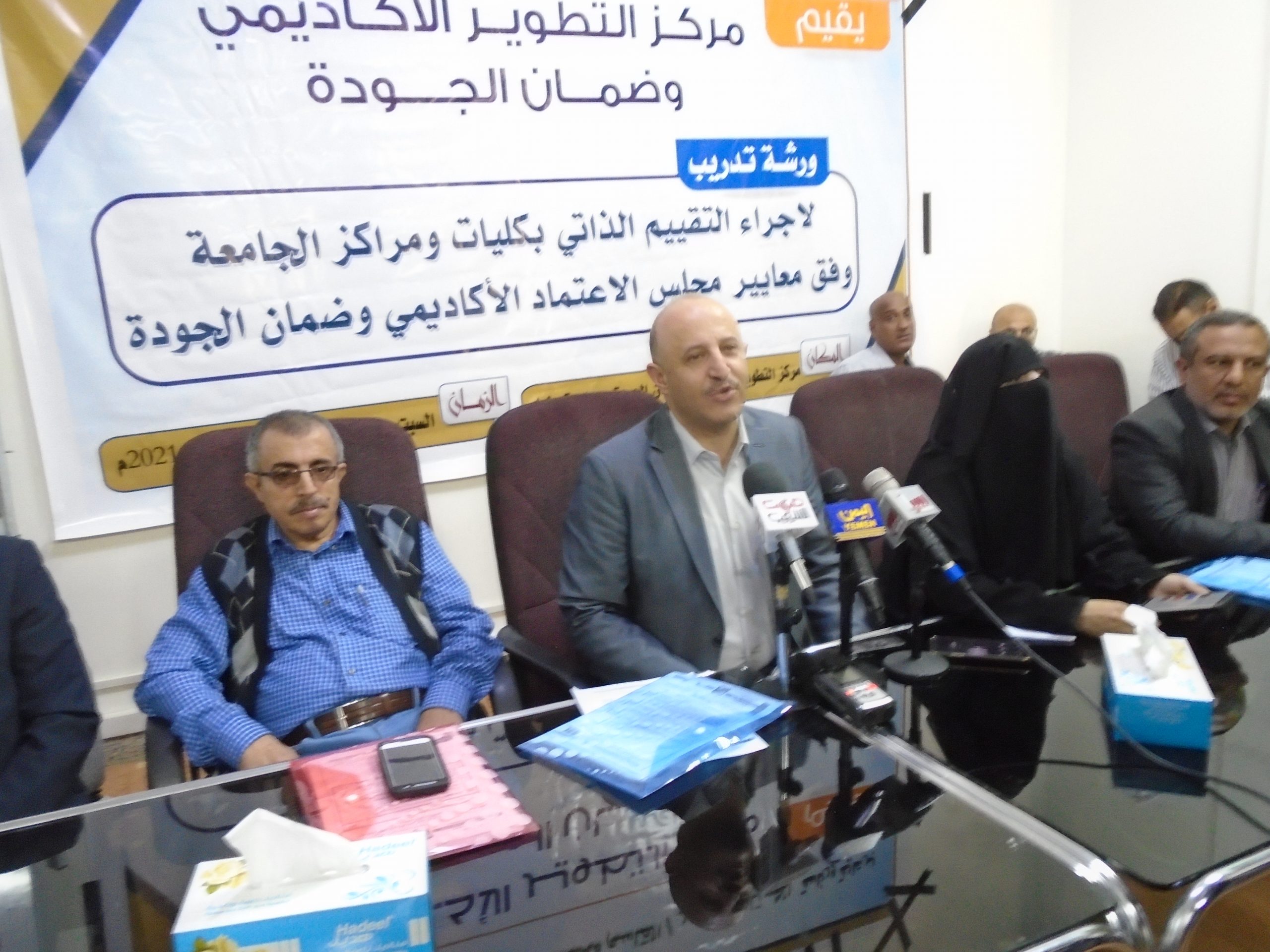 ورشة تدريبية لإجراء التقييم الذاتي لكليات جامعة صنعاء ومراكزها العلمية وفقًا للمعايير الدولية