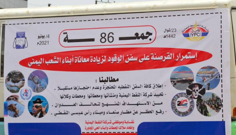 بالصــور : في الجمعـة الـ86 من وقفاتها الاحتجاجية شركة النفط: استمرار أعمال القرصنة يضاعف من معاناة ٢٦ مليون يمني