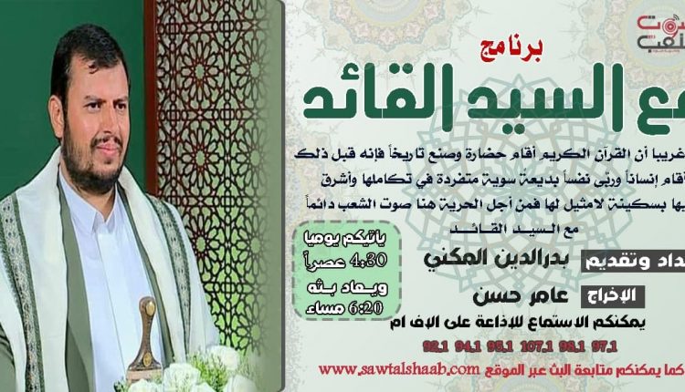 مع السيد القائد مع السيد القائد ( ثبات شعب اليمن في التصدي للعدوان وموقفه من ايران المقاومه ) في يونيو 28, 2021 مع السيد القائد ( ثبات شعب اليمن في التصدي للعدوان وموقفه من ايران المقاومه ) الإعداد والتقديم / بدر الدين المكني الأخراج الإذاعي / عامر حسن https://www.sawtalshaab.com/wp-content/uploads/2021/06/ج-مع-السيدالقائد-11-ثبات-شعب-اليمن-في-التصدي-للعدوان-وموقفه-من-ايران-المقاومه-الي16-ذالقعده-1442هـ.mp3 شارك