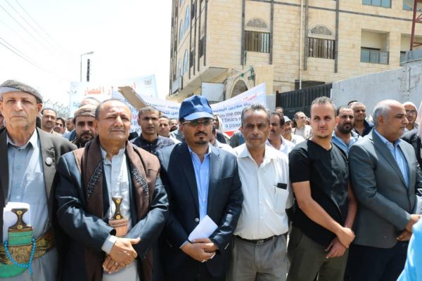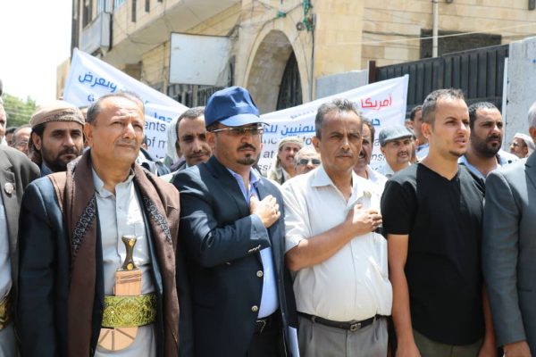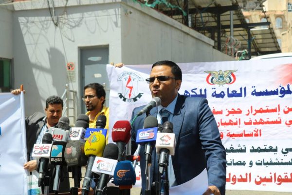 وفي الوقفة اعتبر وزير الكهرباء أحمد العليي استمرار احتجاز سفن المشتقات النفطية عرض البحر اعتداءً سافراً على الأعراف والمواثيق الدولية التي تجرم المساس بقوت المدنيين ومضاعفة معاناتهم.