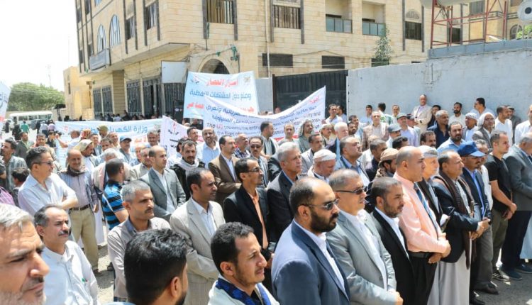 بالصــور : وقفة لوزارة الكهرباء وشركة النفط بصنعاء تنديداً بالقرصنة على سفن الوقود