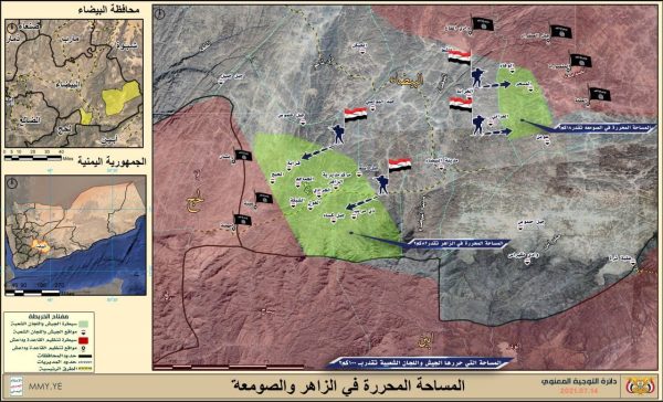 كشف المتحدث الرسمي للقوات المسلحة العميد يحيى سريع، اليوم الخميس ، عن تفاصيل عملية ” النصر المبين” التي نفذتها قوات الجيش واللجان الشعبية في مديريتي الزاهر والصومعة بمحافظة البيضاء ضد عناصر ” القاعدة وداعش” .