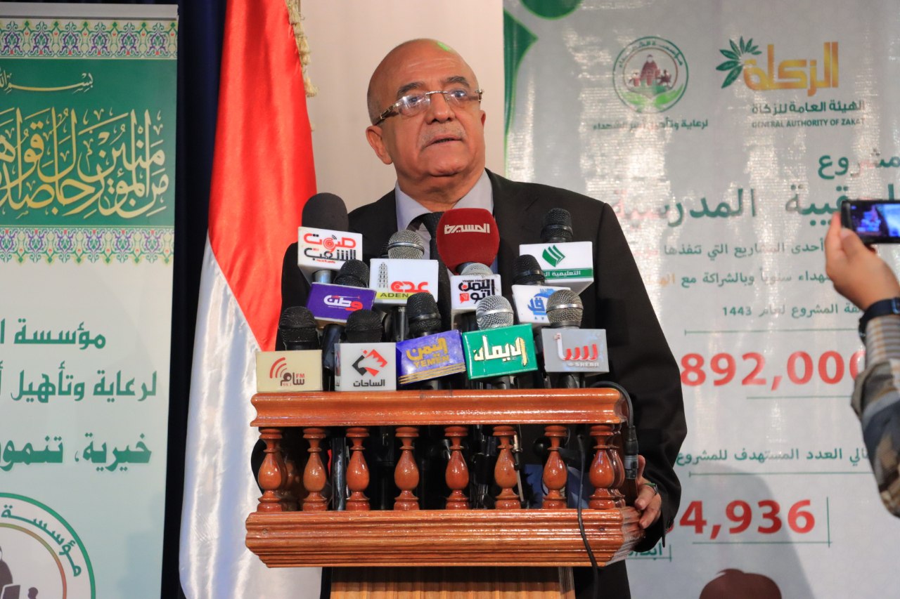 من جانبه أوضح رئيس هيئة الزكاة الشيخ شمسان أبو نشطان أن الهيئة تفتتح العام الهجري الجديد بتنفيذ مشروع الحقيبة المدرسية بالشراكة مع مؤسسة الشهداء مع قدوم العام الدراسي لقرابة 35 ألف طالب وطالبة من أبناء الشهداء.