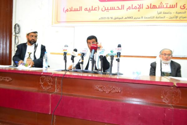 عُقدت بصنعاء اليوم ندوة توعوية في ذكرى استشهاد الإمام الحسين عليه السلام، نظمتها دائرة العلماء والمتعلمين بالمكتب التنفيذي لأنصار الله في ذكرى عاشوراء.