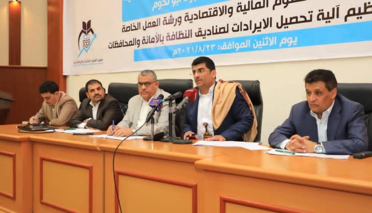 عقدت بمعهد العلوم المالية والاقتصادية اليوم ورشة عمل خاصة بتحديث وتنظيم آلية تحصيل الإيرادات لصناديق النظافة بأمانة العاصمة والمحافظات نظمتها وزارة المالية..
