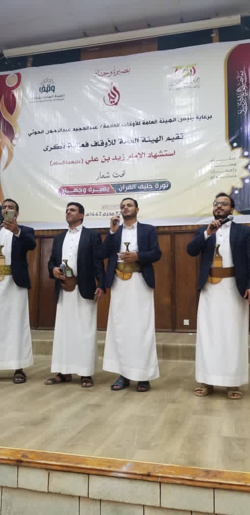 تخلل الفعالية بحضور وكلاء وزارة العدل القاضي أحمد الكحلاني والهيئة العامة للأوقاف الدكتور عبدالله القدمي وكهلان السدح والعلامة محمد قاسم الهاشمي رئيس المجلس الزيدي والشيخ المجاهد علي ناصر قرشة وعدد من مدراء العموم بالهيئة ومكاتبها، قصيدة للشاعر يوسف العلوي وفقرة إنشادية بعنوان ” زيد إمام البرية”، أداء فرقة شباب الصمود.