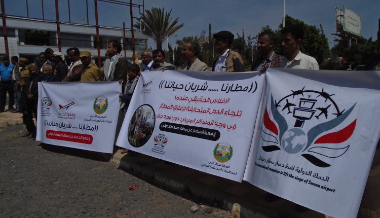 نظم المجلس الأعلى لمنظمات المجتمع المدني وإدارة مطار صنعاء الدولي والحملة الدولية لفك الحصار عن المطار اليوم، وقفة احتجاجية بعنوان “انقذوا أرواح المسافرين من القتل بفتح مطار صنعاء الدولي”.
