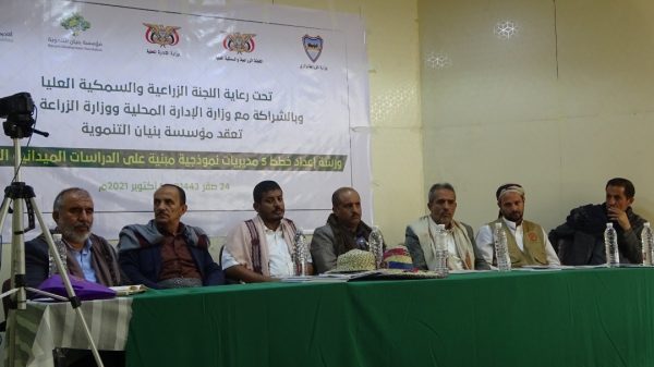 وفي حفل افتتاح الورشة التي عقدت برعاية اللجنة الزراعية والسمكية العليا وبالشراكة مع وزارة الإدارة المحلية ووزارة الزراعة والري أكد المدير التنفيذي لمؤسسة بنيان التنموية المهندس محمد حسن المداني أن الثورة الزراعية انطلقت للمرحلة الثانية نحو هدف تحقيق الاكتفاء الذاتي، وأنها بفضل الله ثم جهود جهات الدعم والاسناد الرسمي في الحكومة والسلطات المحلية، ومبادرات طلائع الجيش التنموي من شباب الجمهورية الذين بذلوا كل طاقاتهم الذهنية والبدنية في سبيل انجاز الهدف الأسمى للثورة.