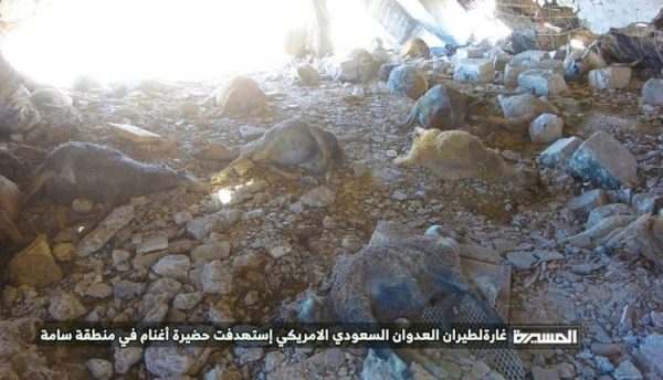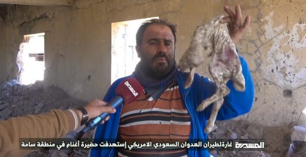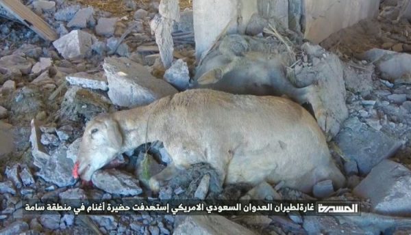 وأوضح مصدر أمني أن طيران العدوان استهدف مزرعة أحد المواطنين في منطقة سامة بمديرية ميفعة، ما أدى إلى نفوق عشرات الأغنام وأضرار كبيرة في المزرعة.