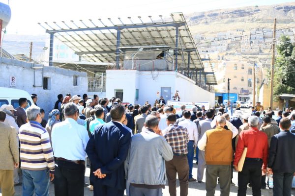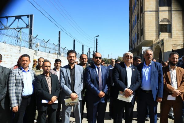 بالصــور: وقفة لموظفي صندوق تشجيع الإنتاج الزراعي والسمكي أمام مكتب الأمم المتحدة في صنعاء