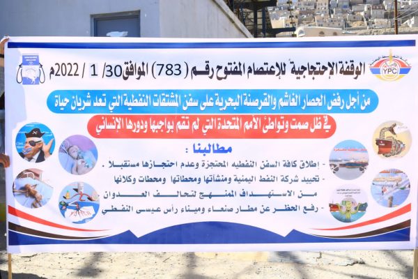 ودعا المشاركون في الوقفة الأمم المتحدة والمجتمع الدولي إلى الضغط على دول تحالف العدوان للسماح بدخول سفن المشتقات النفطية، وإطلاق المحتجز منها، خاصة تلك التي تحمل تراخيص أممية.
