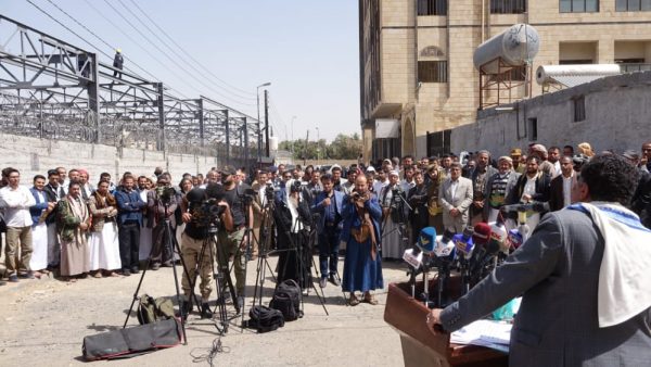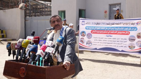 نظّمت وزارة النفط والمعادن والشركة اليمنية للغاز اليوم مؤتمراً صحفياً أمام مكتب الأمم المتحدة بصنعاء للتنديد بالزيادة السعرية على مادة الغاز المنزلي من قبل حكومة المرتزقة.