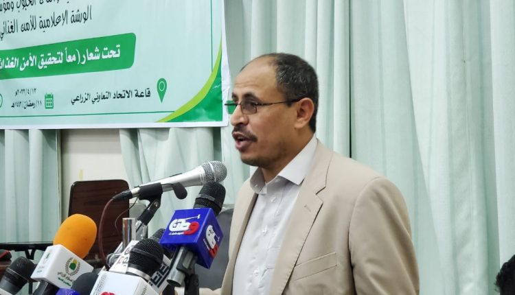 وقال ” هناك 46 مليون هكتارا من الأراضي في اليمن قابل للزراعة، ولذا يجب أن يكون هناك عمل إعلامي كبير لتوعية المجتمع بأهمية استصلاح الأراضي الزراعية وتحقيق الأمن الغذائي خصوصا في ظل استمرار العدوان والحصار”.
