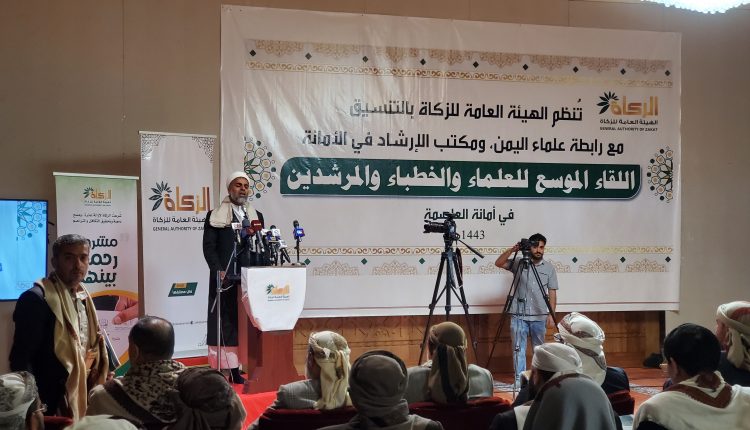 نظمت الهيئة العامة للزكاة بالتنسيق مع رابطة علماء اليمن ومكتب الإرشاد بأمانة العاصمة اليوم، اللقاء الموسع للعلماء والخطباء والمرشدين في أمانة العاصمة.