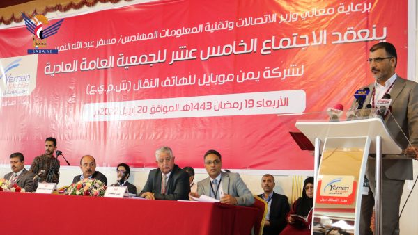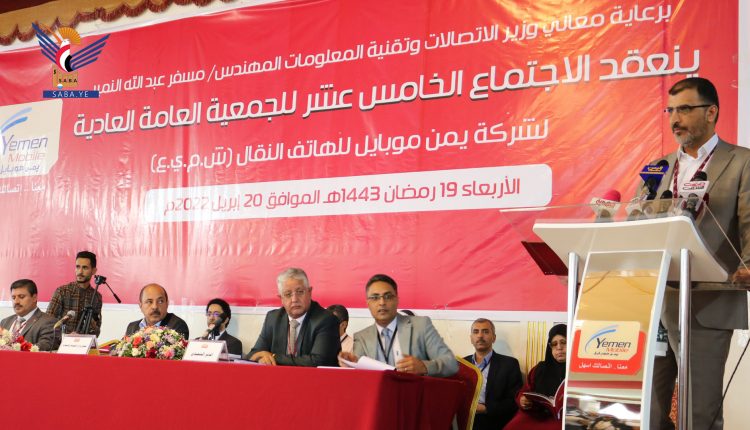 وفي الاجتماع الخامس عشر للجمعية العامة لمساهمي شركة يمن موبايل اليوم، أشاد وزير الاتصالات وتقنية المعلومات المهندس مسفر النمير، بشركة يمن موبايل وما تحققه من نجاحات كبيرة.