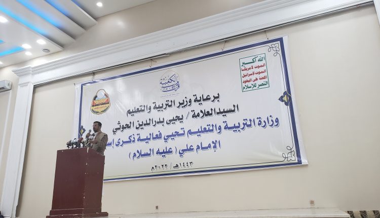 وأشار إلى حاجة الأمة للاقتداء بأخلاق وشجاعة الإمام علي والاطلاع على سيرته العطرة .. لافتا إلى أهمية تثقيف المجتمع بسيرة الإمام علي رضي الله عنه واستلهام الدروس من كفاحه وحياته وجهاده والسير على نهجه خاصة في ظل العدوان الأمريكي السعودي على بلادنا.