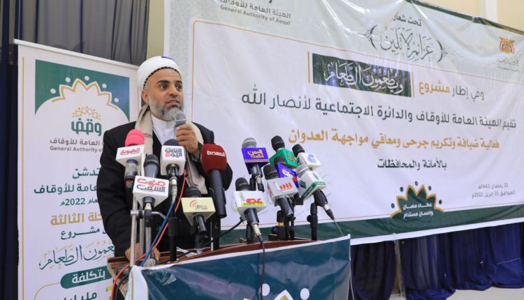 نظمت الهيئة العامة للأوقاف والدائرة الاجتماعية لأنصار الله اليوم، فعالية خطابية ومأدبة إفطار وتكريم لجرحى ومعاقي العدوان بالأمانة والمحافظات تحت شعار ” عزائم لا تلين”.