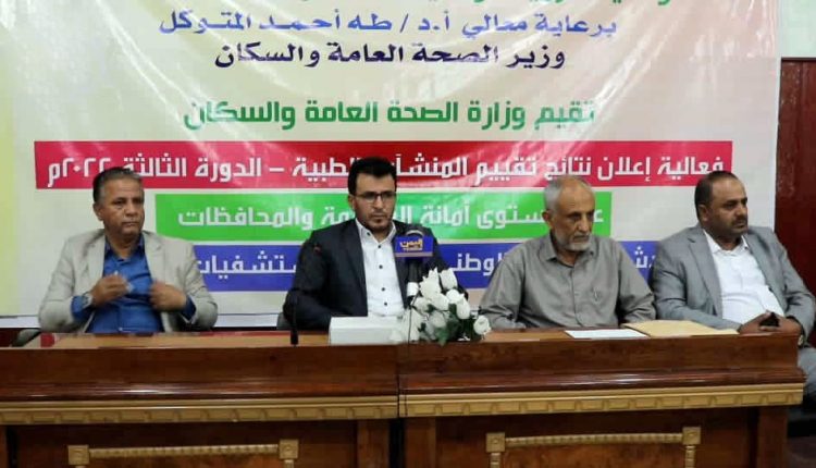 وجدد وزير الصحة التأكيد أن نتائج التقييم والتصنيف للمنشآت الطبية الخاصة ليست للتشهير وإنما للارتقاء بالخدمات الطبية وخلق تنافس بين المستشفيات لتقديم خدمات أفضل للمواطنين خاصة في ظل الظروف الصعبة التي يمر بها اليمن جراء استمرار العدوان والحصار ومنع دخول الدواء والتجهيزات الطبية.