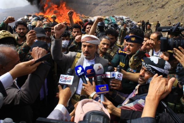لافتا الى أن احراق هذه الكمية الكبيرة من الحشيش والمخدرات يؤكد نجاح الأجهزة الأمنية في مكافحتها لهذه الآفة المدعومة والممولة من دول العدوان ولدينا اعترافات موثقة لمرتزقتهم من تجار المخدرات انهم قاموا بتهريب المخدرات بإيعاز من قوى العدوان.