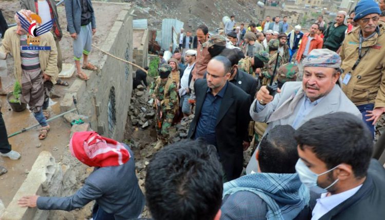 واستمع الرئيس المشاط من المعنيين بالأمانة إلى شرح عن حجم الأضرار في المنازل الواقعة في منطقة لم تخضع للتخطيط.