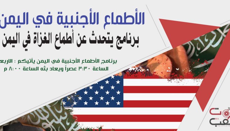 الأطماع الأجنبية في اليمن الأطماع الأجنبية في اليمن -4 في أغسطس 27, 2022 https://www.sawtalshaab.com/wp-content/uploads/2022/08/الاطماع-الصهيونية-_الحلقة-4.mp3 برنامج الأطماع الأجنبية في اليمن يتحدث عن أطماع الغزاة في اليمن يأتيكم يوم الأربعاء 3:30 عصرا ويعاد الساعة 8:00 مساءا عبر أثير إذاعة صوت الشعب بالتردد 97.1 شارك