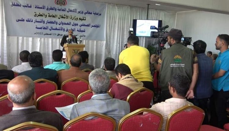 استعرضت وزارة الأشغال العامة والطرق في مؤتمر صحفي، اليوم الاثنين، الأضرار والخسائر التي لحقتها جراء العدوان الأمريكي السعودي على اليمن.