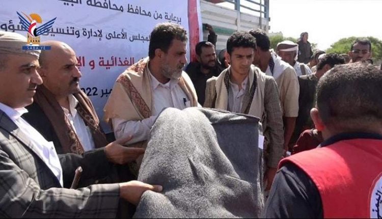 وخلال التدشين بمديرية الملاجم، أشاد محافظ البيضاء، ببرامج وأنشطة الهلال الأحمر في مساعدة النازحين والأسر الفقيرة والأشد فقراً، وكذا المتضررين من السيول للتخفيف من معاناتهم جراء استمرار العدوان والحصار.