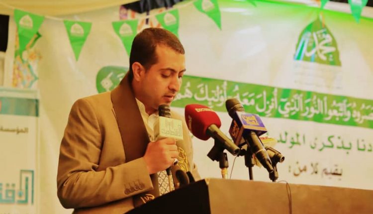 واعتبر الاحتفال بهذه المناسبة رسالة لأعداء الأمة بتمسك اليمنيين بالرسول الكريم وارتباطهم الوثيق به.. لافتا إلى أن الاحتفاء بذكرى المولد النبوي محطة للتزود من نهج النبي الخاتم والتأسي به وتكريس مبادئه وأخلاقه للنهوض بواقع الأمة.