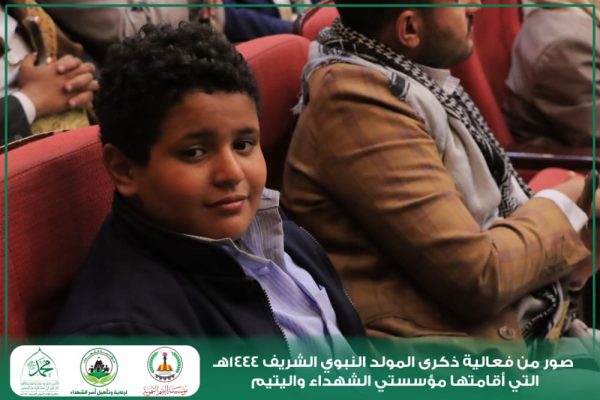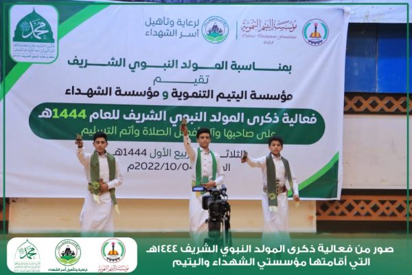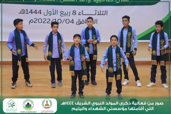وذكر مسؤول الرعاية الاجتماعية بمؤسسة الشهداء، أن الأيتام وذوي الشهداء سباقون إلى ساحات المولد النبوي للاحتفاء بهذه المناسبة الدينية الجليلة تمجيداً وتعظيماً لرسول الله.