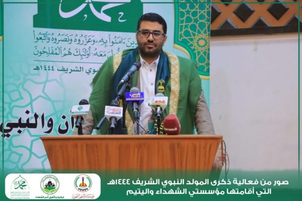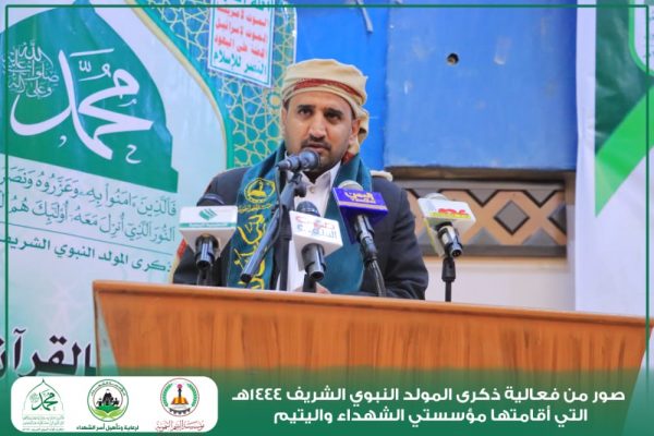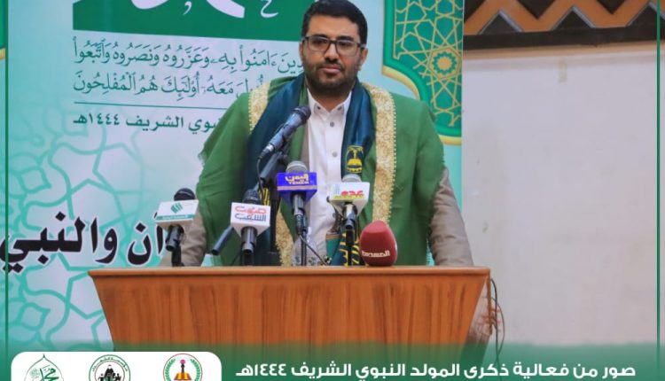 وقال” إن الاحتفاء بهذه المناسبة، بمثابة تقييم واقعنا وليس من باب الترف، فضلاً عن أنها فرصة لتقييم علاقتنا برسول الله، والعودة إليه وفي ذات الوقت رسالة لأعداء الأمة الذين يسيئون للرسول الكريم، بتمسك أهل اليمن بالنبي الكريم وسيرته العطرة ونهجه القويم”.