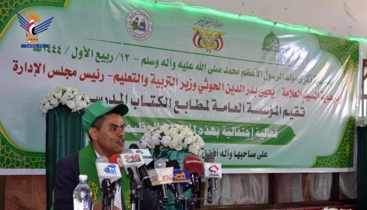 وفي الفعالية التي حضرها عدد من وكلاء وزارة التربية وأمين عام اللجنة الوطنية لليونسكو الدكتور أحمد الرباعي والمدير التنفيذي لصندوق دعم المعلم والتعليم ومطابع الكتاب المدرسي حسين عامر جبل، أشار نائب المدير التنفيذي لمؤسسة مطابع الكتاب المدرسي حمدي النوعة إلى أن علاقة الشعب اليمني بالرحمة المهداة علاقة لا تنتهي.