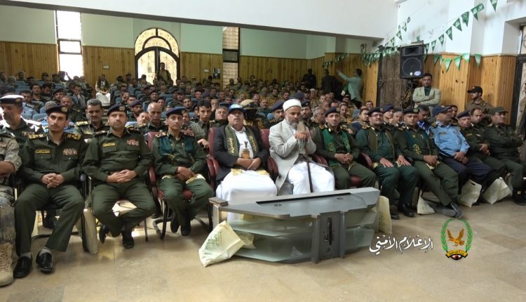 وفي الفعالية بحضور العميد ركن عبدالله القيسي وكيل مصلحة خفر السواحل، ومدير عام المنافذ والمطارات العميد محمد المحاقري، ومدير عام المشاريع العميد محمد شباب، والعميد أسامة مفضل مدير عام الإمداد والتموين، ونائب مدير عام المرور العميد محمد المسيبي، ومدير مكتب الوكيل لقطاع الأمن والشرطة العقيد حامد القرم، القيت قصيدة شعرية للشاعر بسام شانع، فيما قدمت فرقة الشهيد الصماد وفرقة 21 سبتمبر فقرتين إنشاديه عبرت جميعها عن أهمية وعظمة المناسبة.