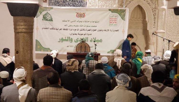 نظم بالجامع الكبير بصنعاء فعالية بمناسبة المولد النبوي الشريف، نظمتها وزارة الإرشاد وشؤون الحج والعمرة بالاشتراك مع دائرة الثقافة القرآنية بالمكتب التنفيذي تحت شعار“ ميلاد الهدى والنور “وفي الفعالية أشارت كلمات المتحدثين إلى أهمية إحياء مولد خير البرية وسيد البشرية محمد صلى الله عليه وآله وسلم والتذكير بسجاياه العظيمة وأخلاقه العالية .وتطرقت الكلمات إلى التحولات التي حدثت بميلاد الرسول الأعظم محمد عليه الصلاة والسلام في الحياة الإنسانية وما كان عليه العباد قبل الرسالة الإسلامية الخالدة من اختلاف و إلى دلالات الاحتفاء بذكرى المولد النبوي والاعتراف بمنة الله تعالى وفضله على المسلمين كما قال تعالى ” قُلْ بِفَضْلِ اللَّهِ وَبِرَحْمَتِهِ فَبِذَلِكَ فَلْيَفْرَحُوا هُوَ خَيْرٌ مِمَّا يَجْمَعُونَ “.