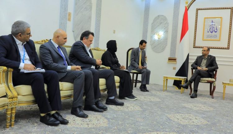 التقى فخامة المشير الركن مهدي المشاط رئيس المجلس السياسي الأعلى اليوم الأربعاء ، مساعد الأمين العام للشؤون الإنسانية- نائب بعثة منسق الإغاثة في حالات الطوارئ جويس مسويا، ونائب مدير العمليات مدير قسم الشرق الأوسط وشمال أفريقيا في مكتب الأمم المتحدة لتنسيق الشؤون الإنسانية في نيويورك طارق تلاحمة.