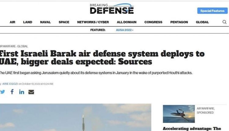 وقال موقع “Breaking Defense” إن نسخة من نظام الدفاع الجوي “باراك” تم نشرها في الإمارات بموجب اتفاقيات التطبيع بين أبوظبي وكيان العدو، موضحا أن هذه الخطوة سيتلوها نشر المزيد من الأنظمة.