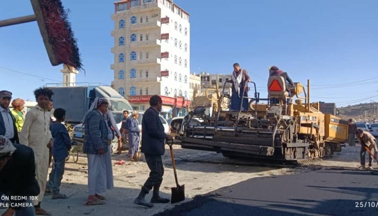تدشين مشروع تأهيل وسفلتة الشوارع الداخلية بمدينة خمر بعمران