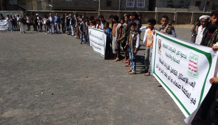 وشدد المشاركون في بيان وقفتهم على أهمية هذه الضربة التحذيرية التي تهدف إلى قطع ايادي العبث والنهب لثروات البلد من قبل قوى العدوان الغاشم في حين يعاني أبناء هذا الشعب الحرمان والفقر وقطع الرواتب منذ عدة سنوات ..